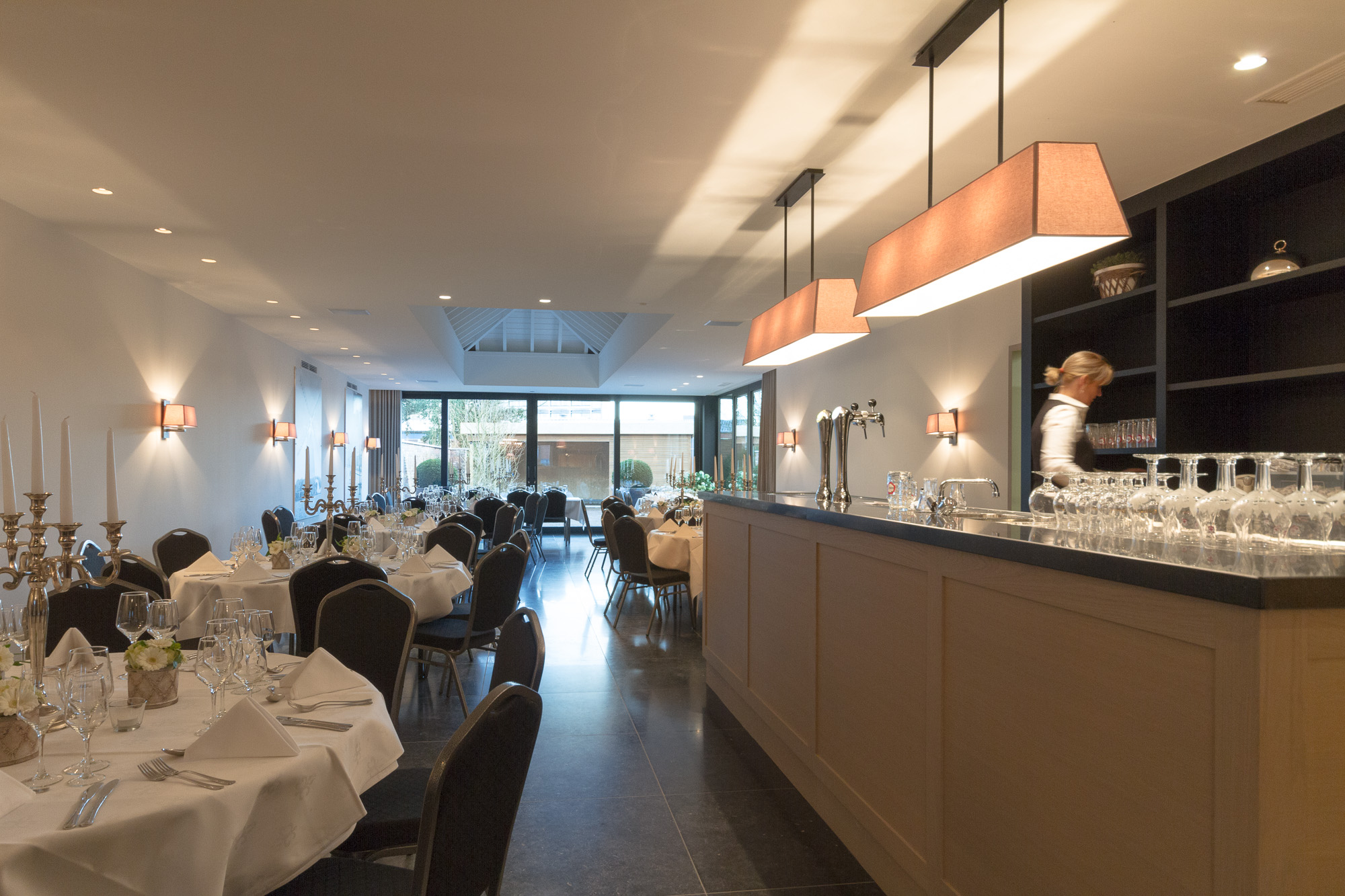 De vloer is een Belgische donker gezoete arduin en de binnendeuren en toog werden gemaakt van 1e keus Franse eik.